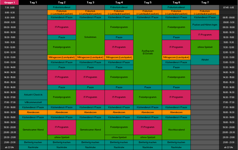 Insgesamt haben beide Gruppe die gleichen Angebote und Programmpunkte, teilweise aber zeitlich versetzt.
